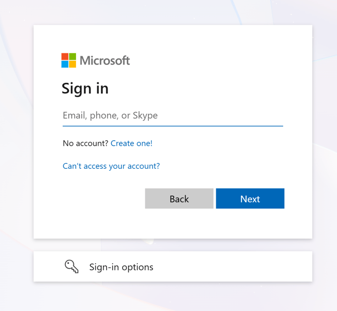 - You should see a Microsoft login screen similar to this one: