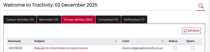 How to update settings for receiving emails (Tractivity Shared Mailbox)